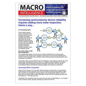 Some industry sectors such as automotive and medical continue to push for higher and higher reliability levels. However, many fabs are having difficulties achieving them. Current inspection regimes still allow too many semiconductor defects to pass through and escape to the field. This is primarily because of time and expense issues.
